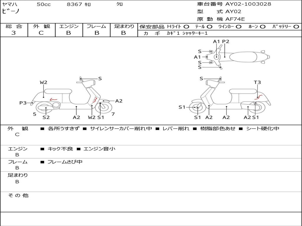 | Номер рамы / VIN | AY02-1003028 |