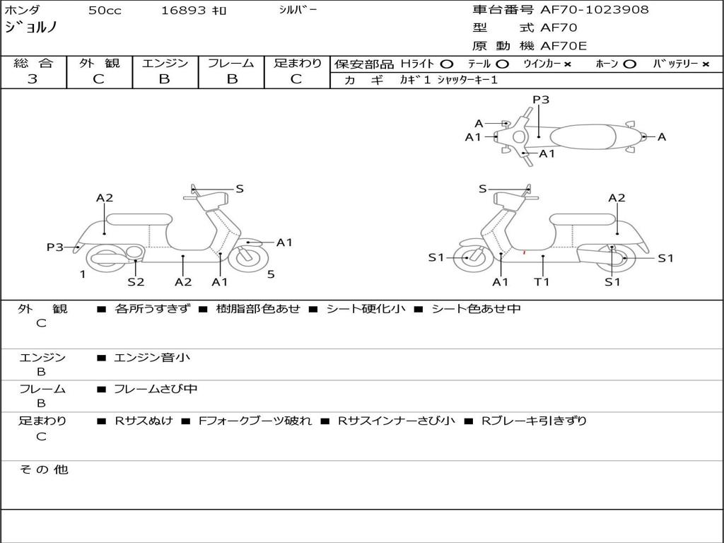| Номер рамы / VIN | AF70-1023908 |