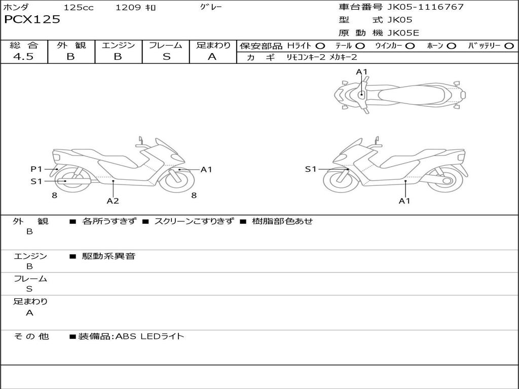 | Номер рамы / VIN | JK05-1116767 |