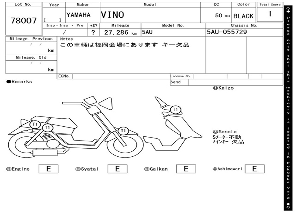 | Номер рамы / VIN | 5AU-055729 |
