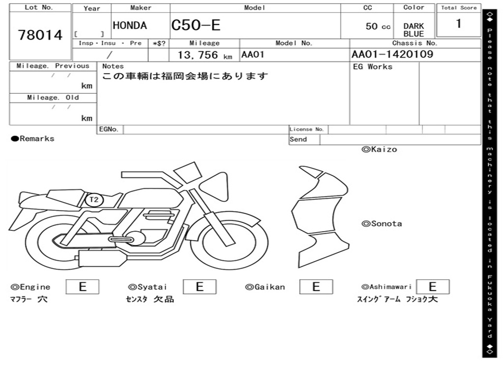 | Номер рамы / VIN | AA01-1420109 |