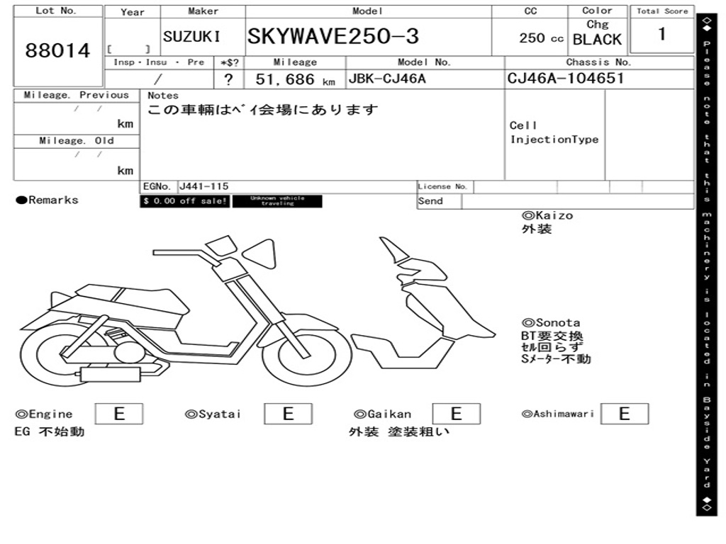 | Номер рамы / VIN | CJ46A-104651 |