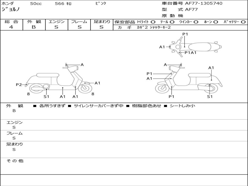 | Номер рамы / VIN | AF77-1305740 |