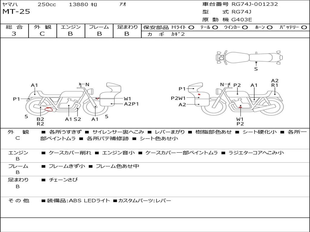 | Номер рамы / VIN | RG74J-001232 |