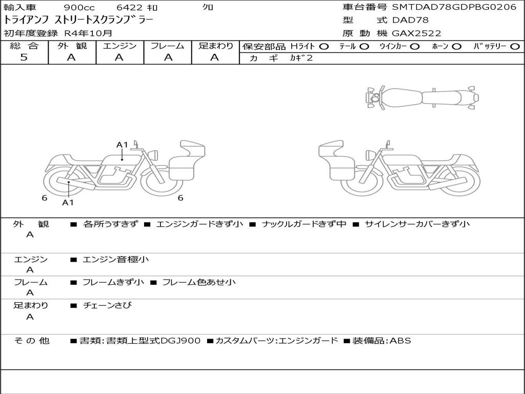 | Отметка об участии мотоцикла в авариях | Мотоцикл не участвовал в ДТП |