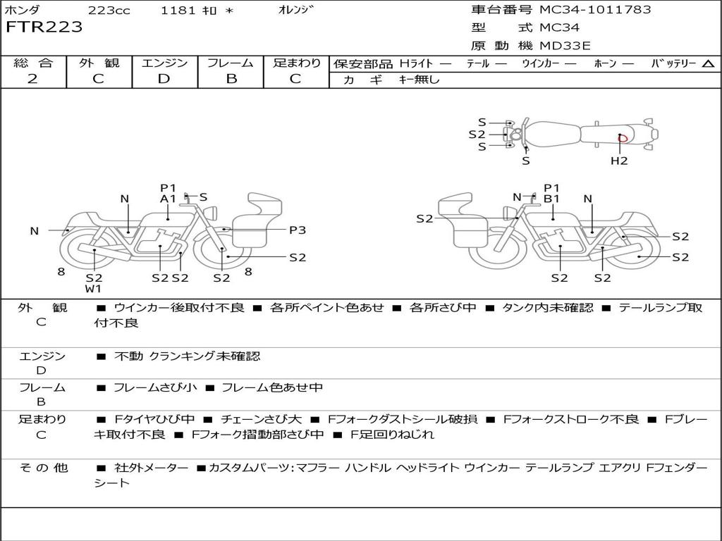 | Номер рамы / VIN | MC34-1011783 |