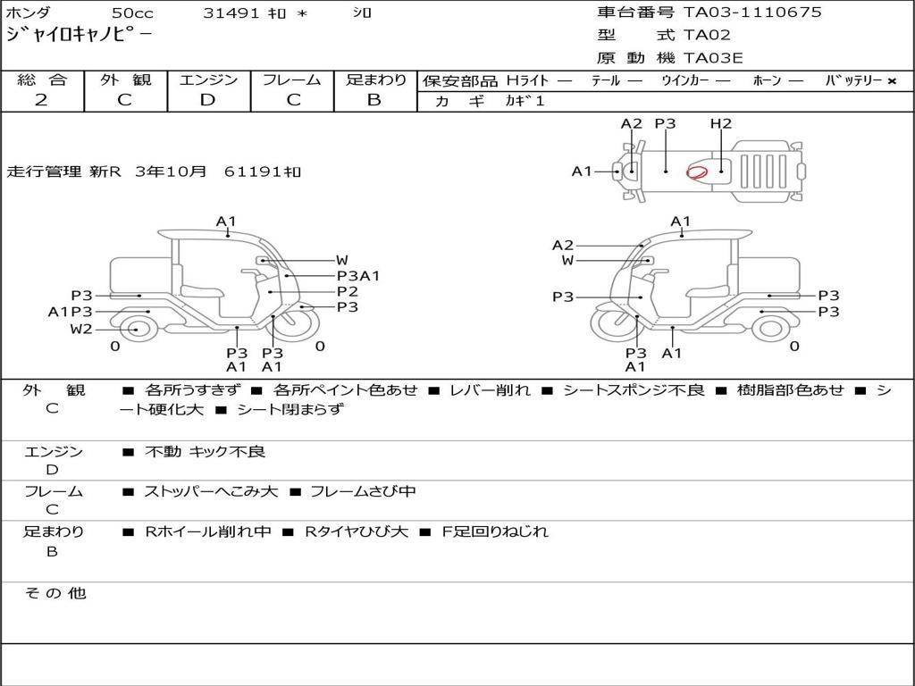 | Номер рамы / VIN | TA03-1110675 |