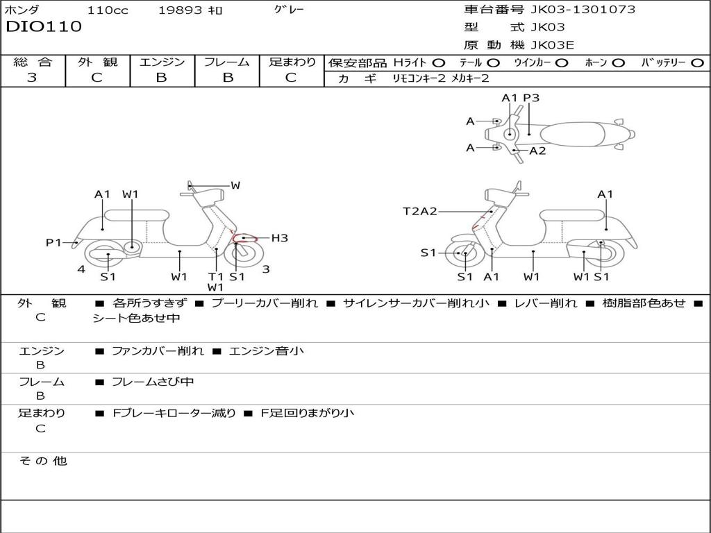 | Номер рамы / VIN | JK03-1301073 |