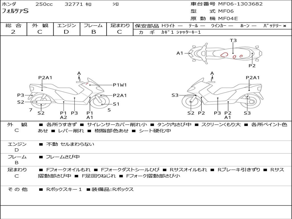 | Номер рамы / VIN | MF06-1303682 |