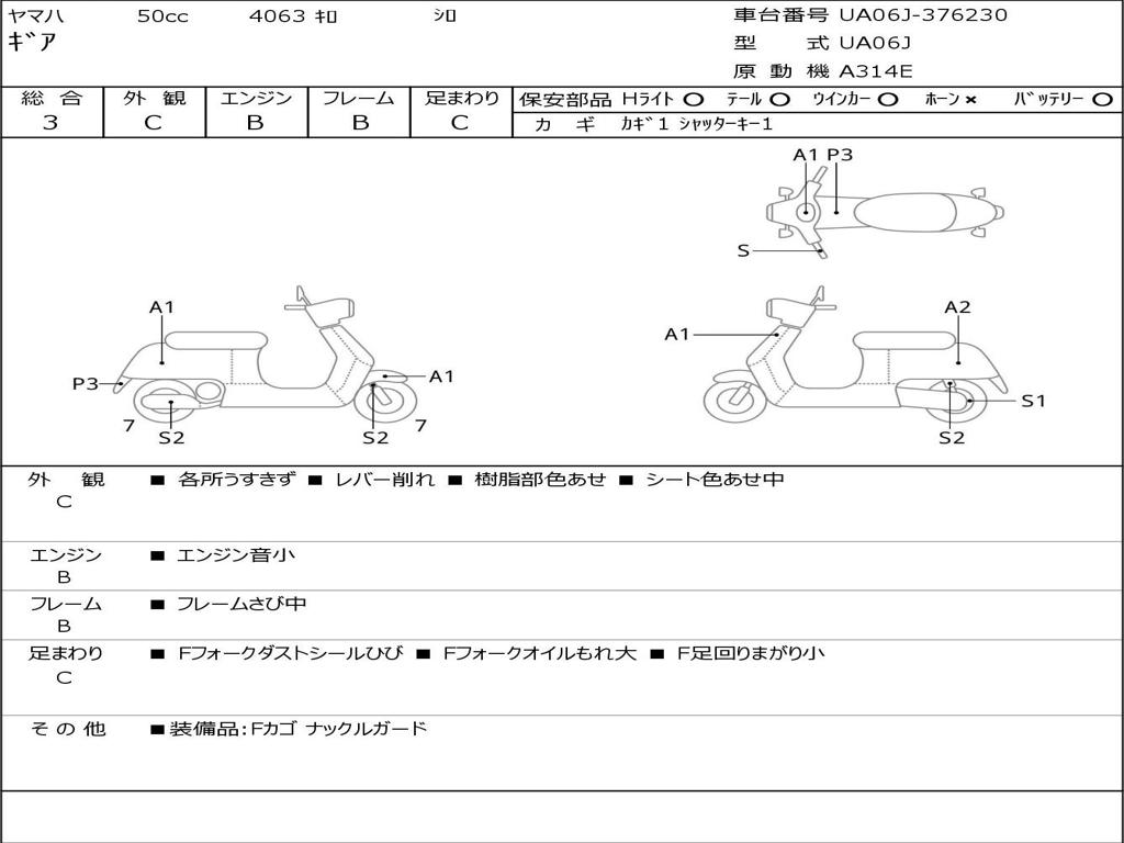 | Номер рамы / VIN | UA06J-376230 |