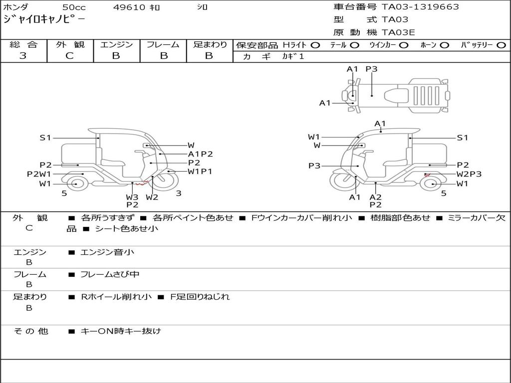 | Номер рамы / VIN | TA03-1319663 |
