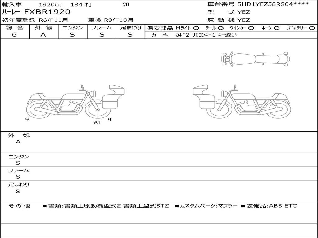 | Номер рамы / VIN | 5HD1YEZ58RS040084 |