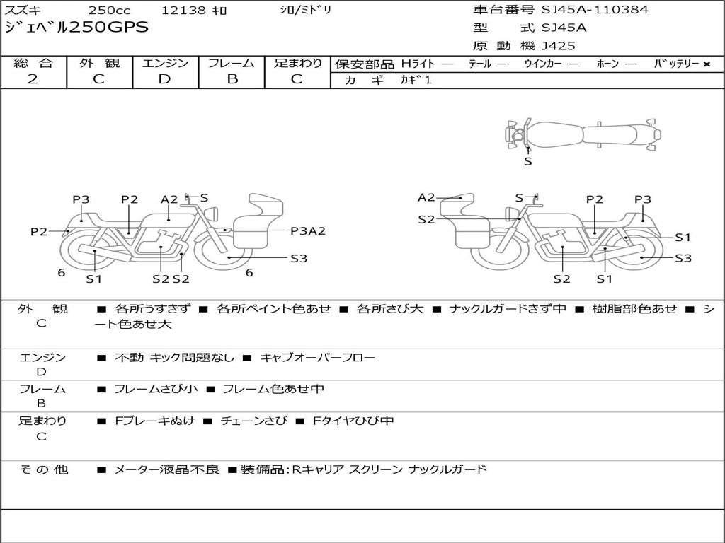 | Номер рамы / VIN | SJ45A-110384 |