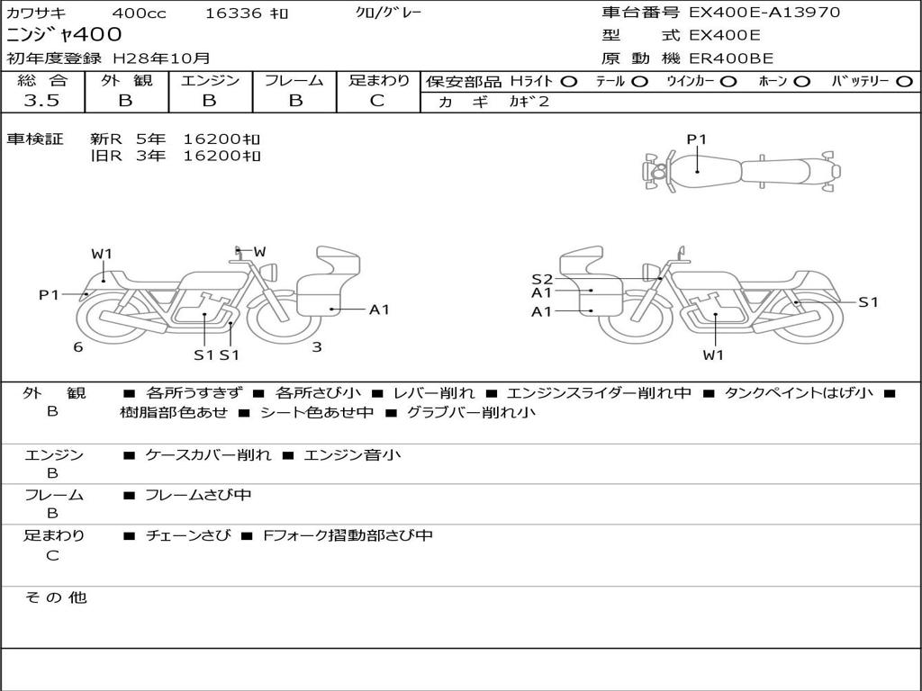 | Номер рамы / VIN | EX400E-A13970 |