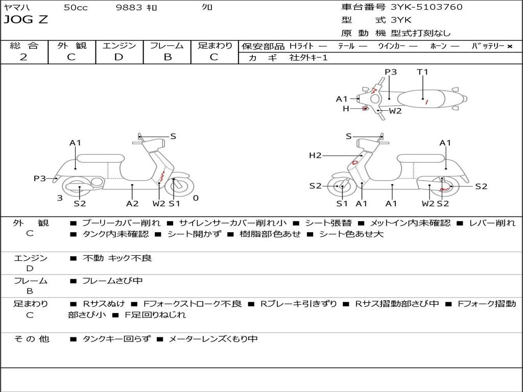 | Номер рамы / VIN | 3YK-5103760 |
