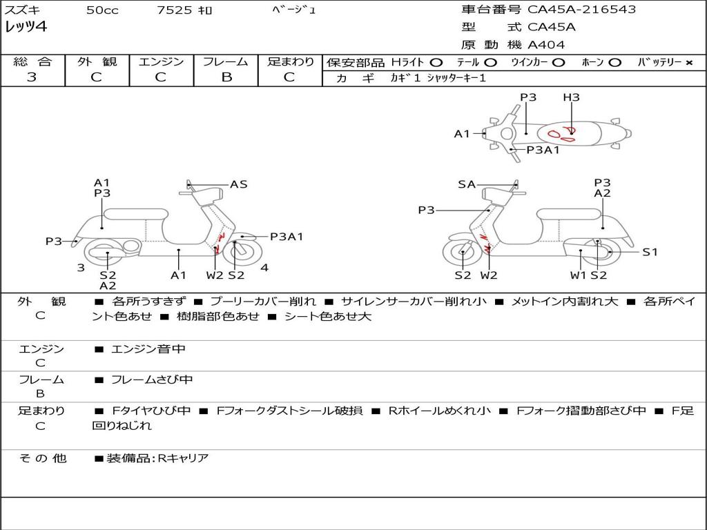 | Номер рамы / VIN | CA45A-216543 |