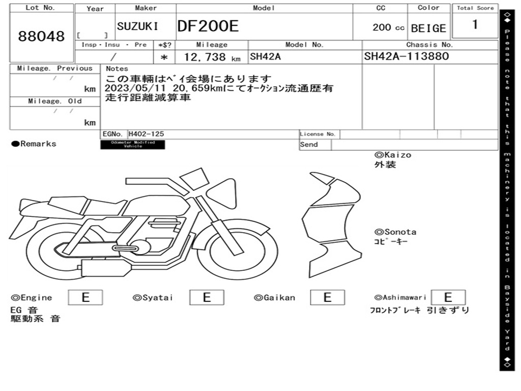 | Номер рамы / VIN | SH42A-113880 |