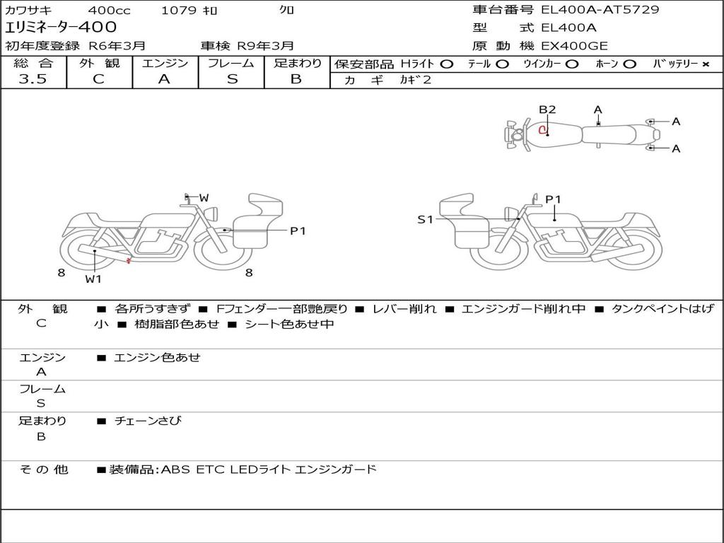 | Номер рамы / VIN | EL400A-AT5729 |