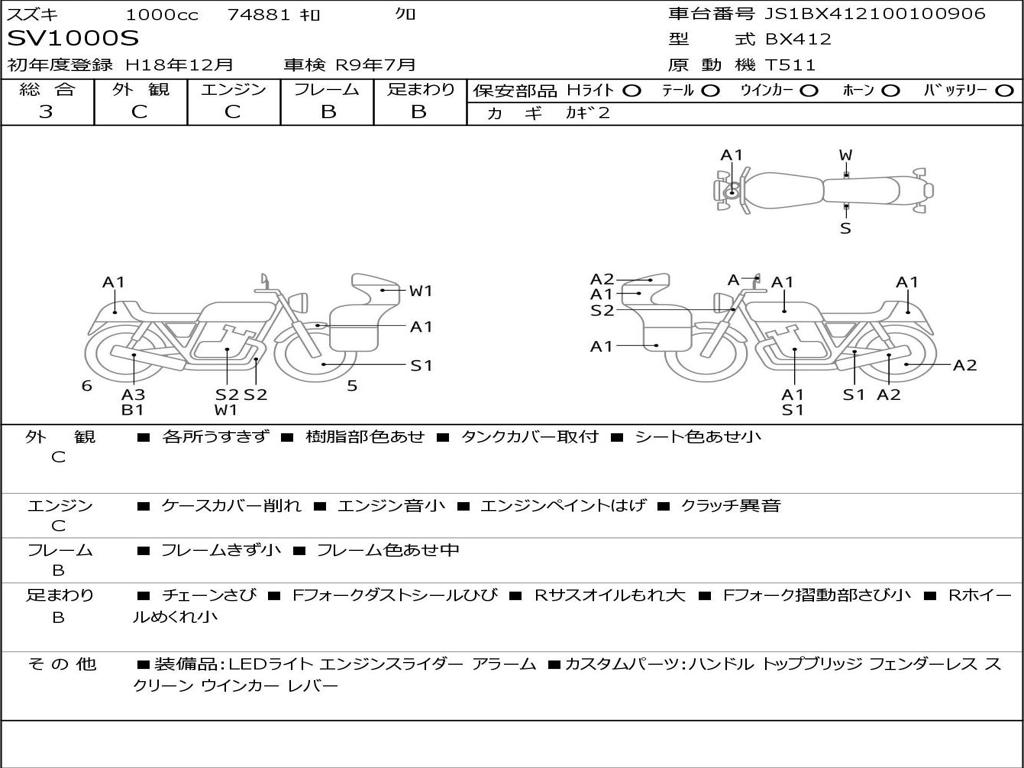 | Номер рамы / VIN | JS1BX412100100906 |