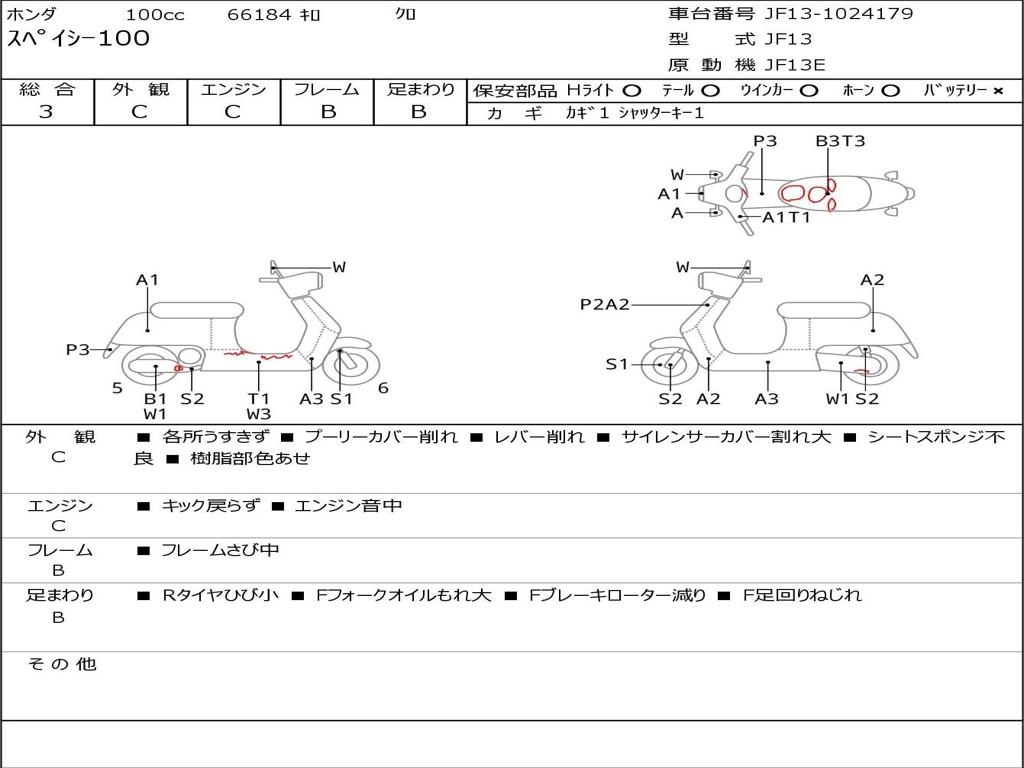 | Номер рамы / VIN | JF13-1024179 |