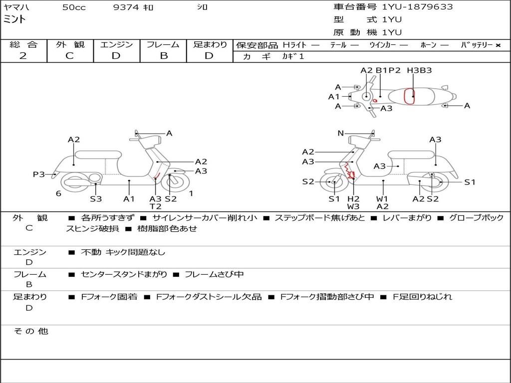 | Номер рамы / VIN | 1YU-1879633 |