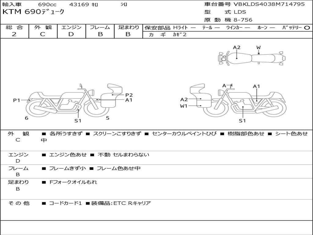 | Номер рамы / VIN | VBKLDS4038M714795 |