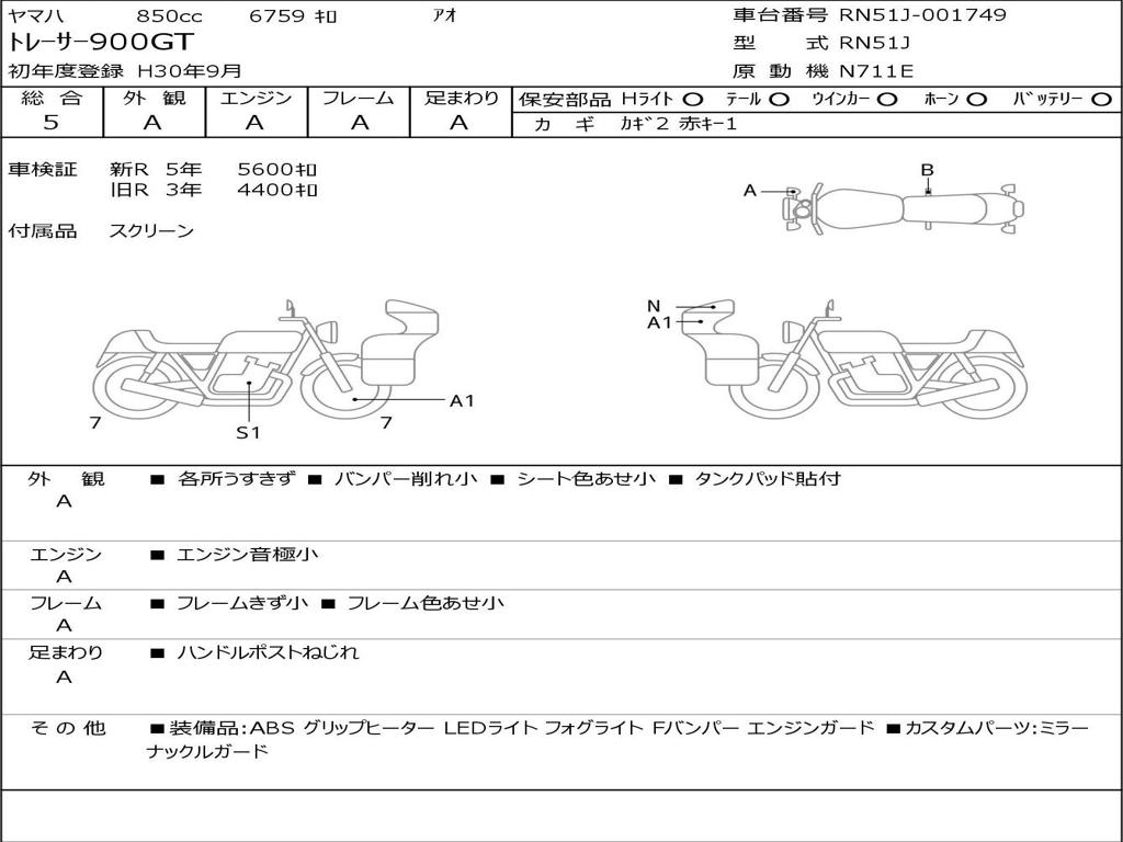 | Номер рамы / VIN | RN51J-001749 |