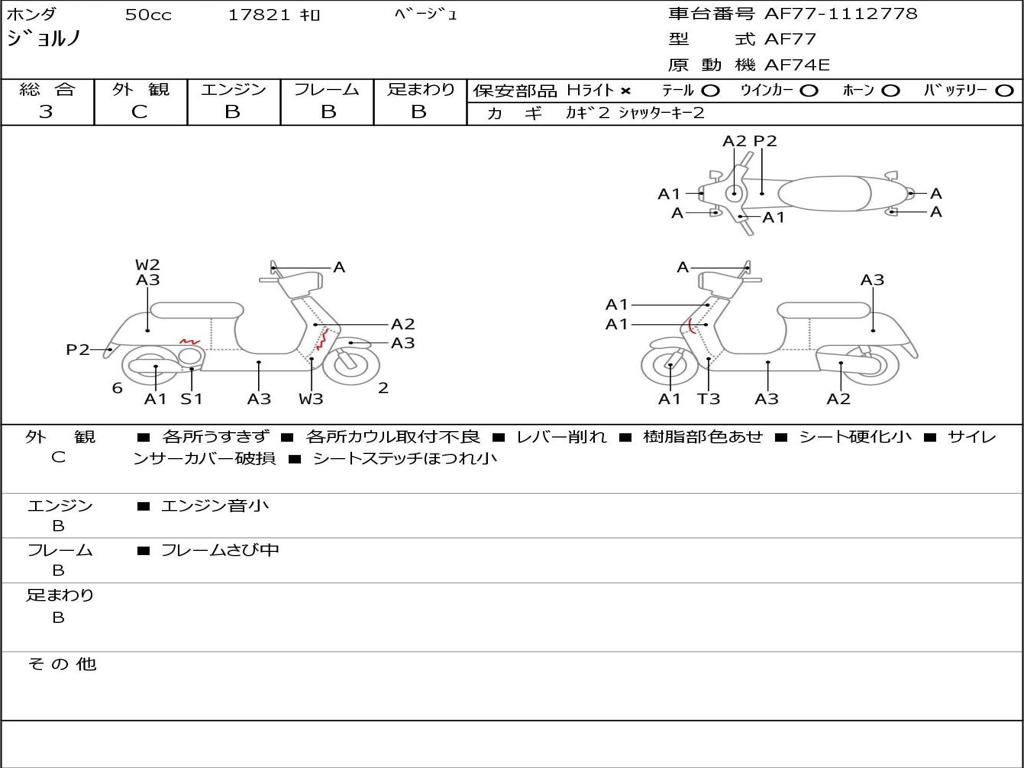 | Номер рамы / VIN | AF77-1112778 |