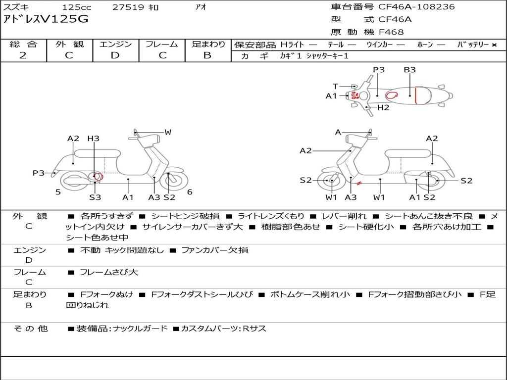 | Номер рамы / VIN | CF46A-108236 |