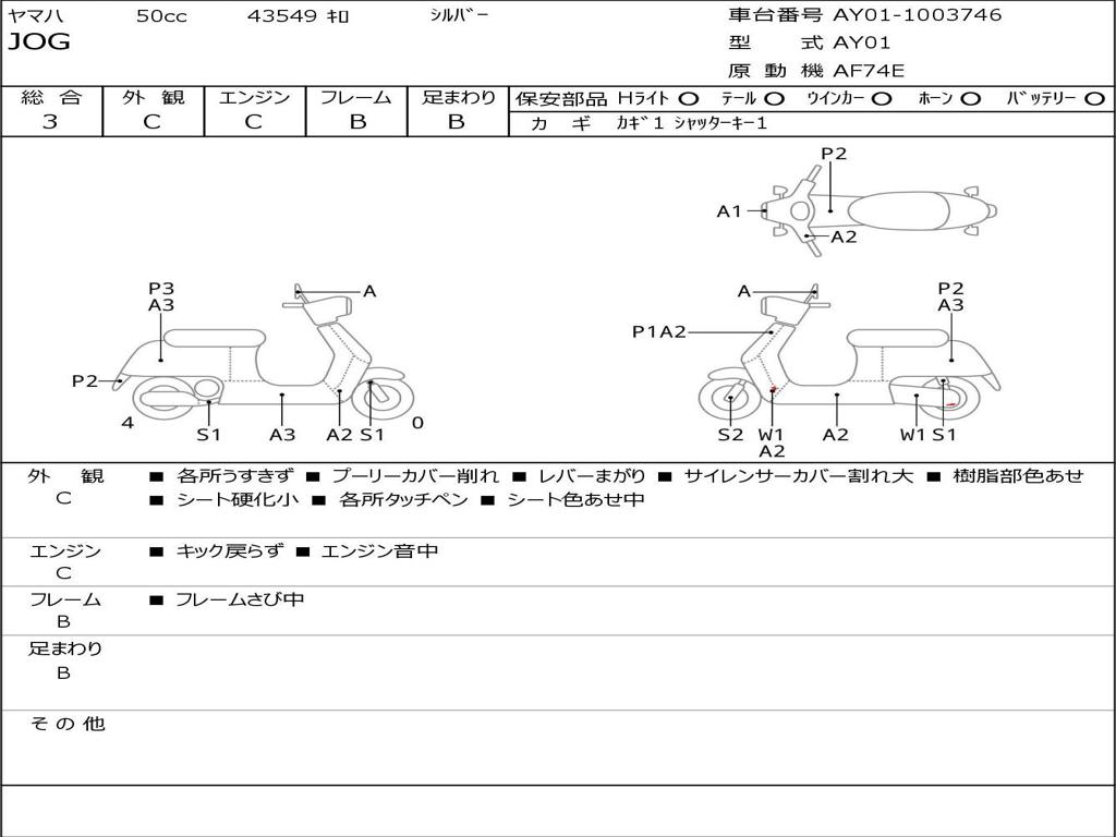 | Номер рамы / VIN | AY01-1003746 |