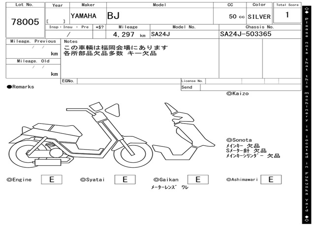 | Номер рамы / VIN | SA24J-503365 |