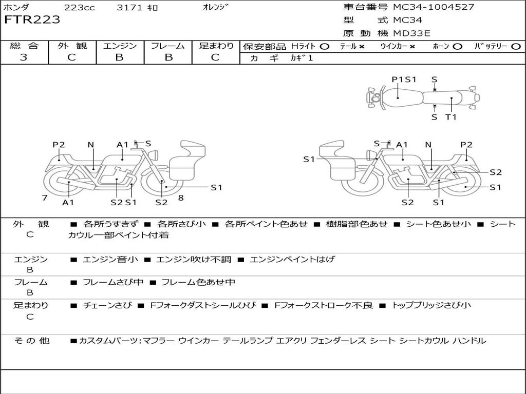 | Номер рамы / VIN | MC34-1004527 |