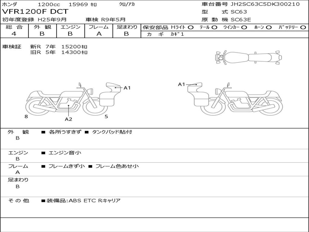 | Номер рамы / VIN | JH2SC63C5DK300210 |