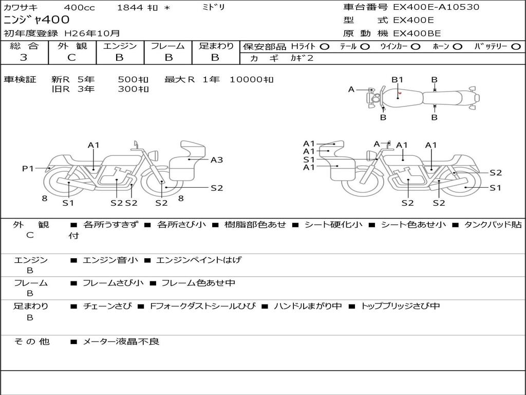 | Номер рамы / VIN | EX400E-A10530 |
