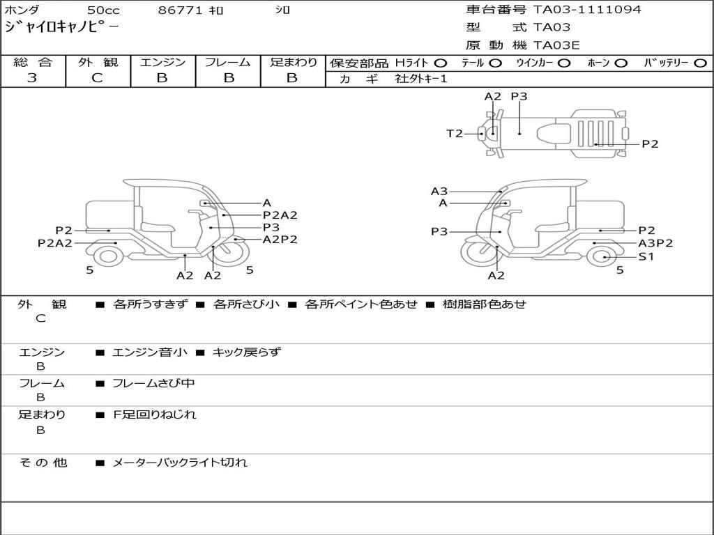| Номер рамы / VIN | TA03-1111094 |