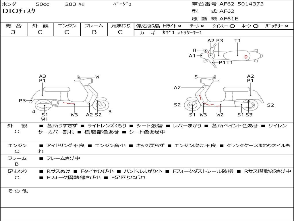 | Номер рамы / VIN | AF62-5014373 |