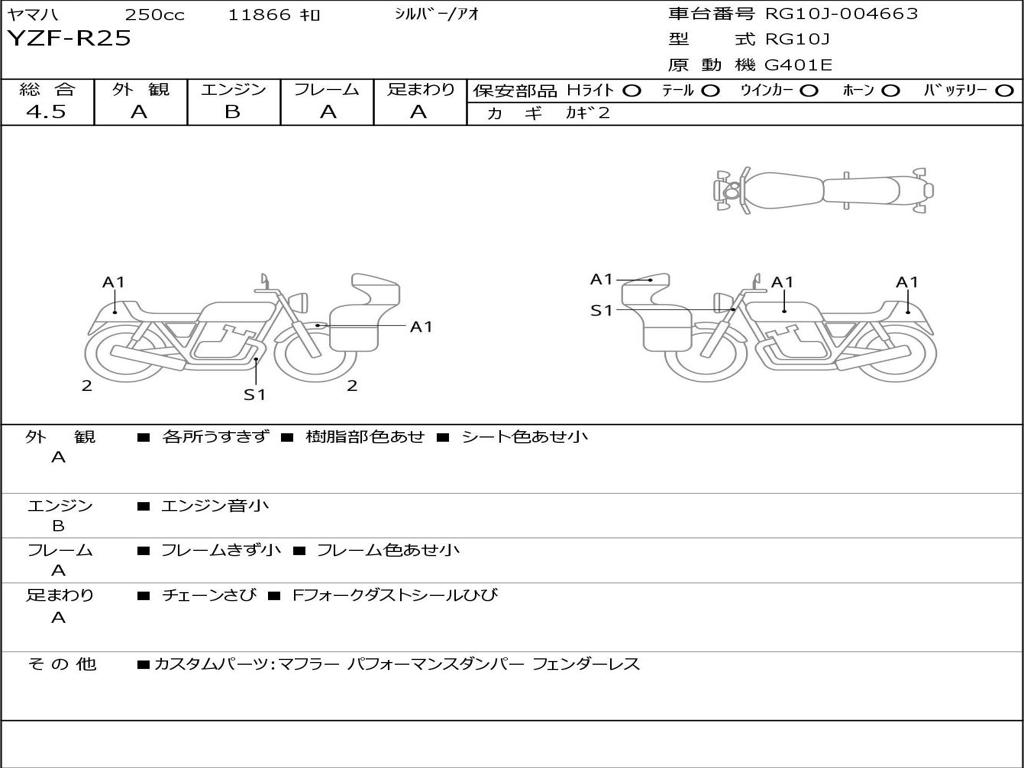 | Номер рамы / VIN | RG10J-004663 |