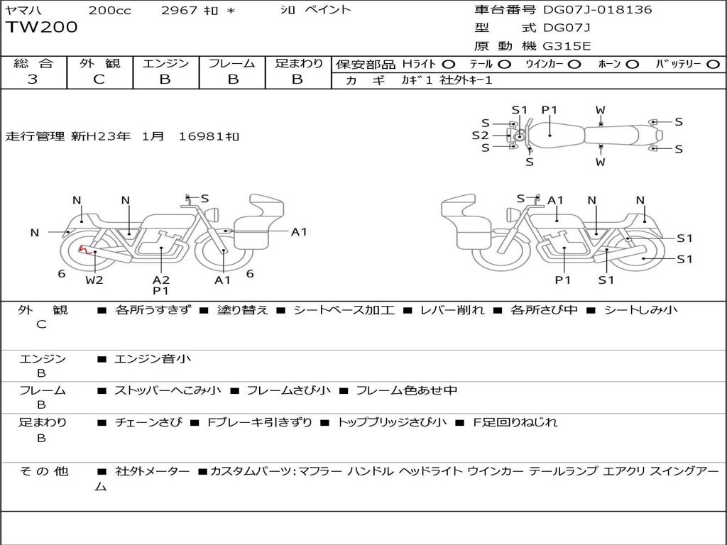 | Номер рамы / VIN | DG07J-018136 |