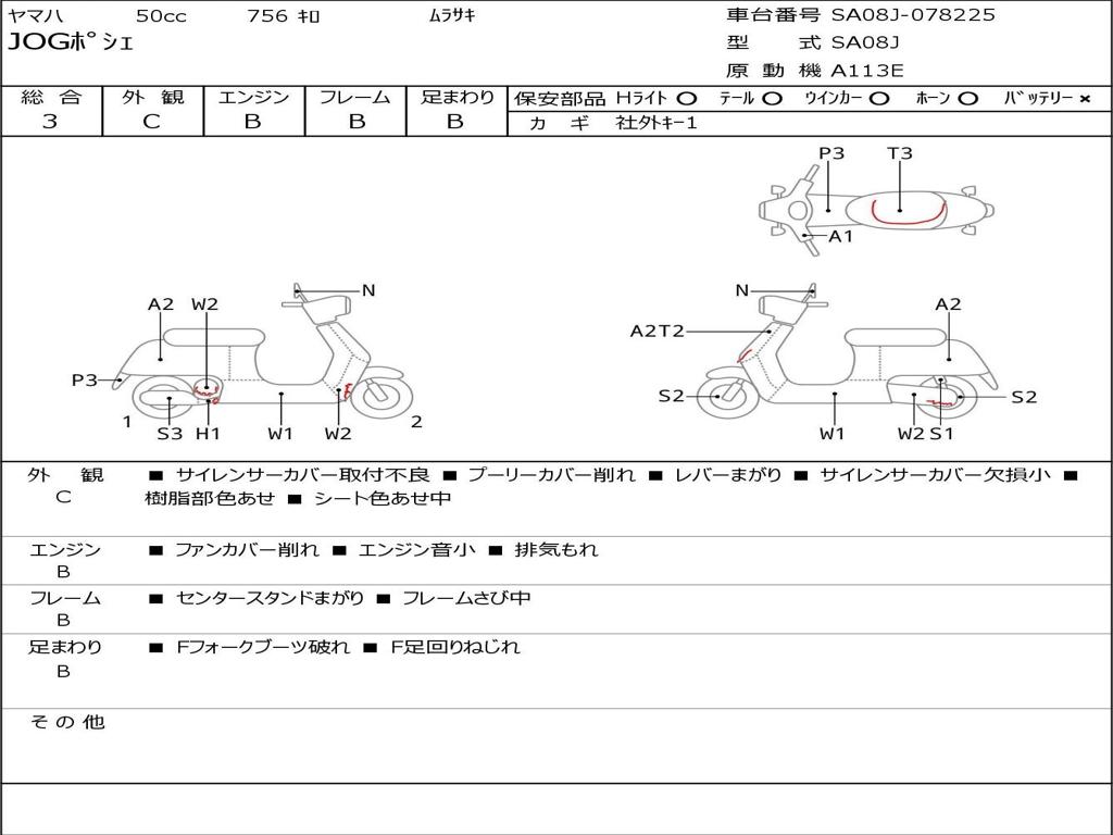 | Номер рамы / VIN | SA08J-078225 |