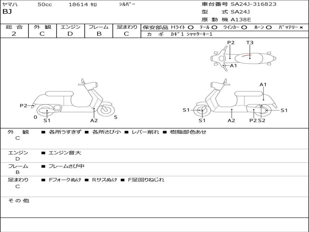 | Номер рамы / VIN | SA24J-316823 |