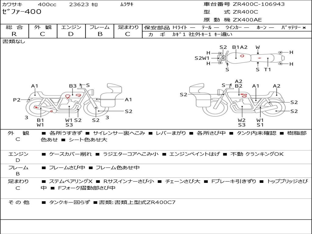 | Номер рамы / VIN | ZR400C-106943 |