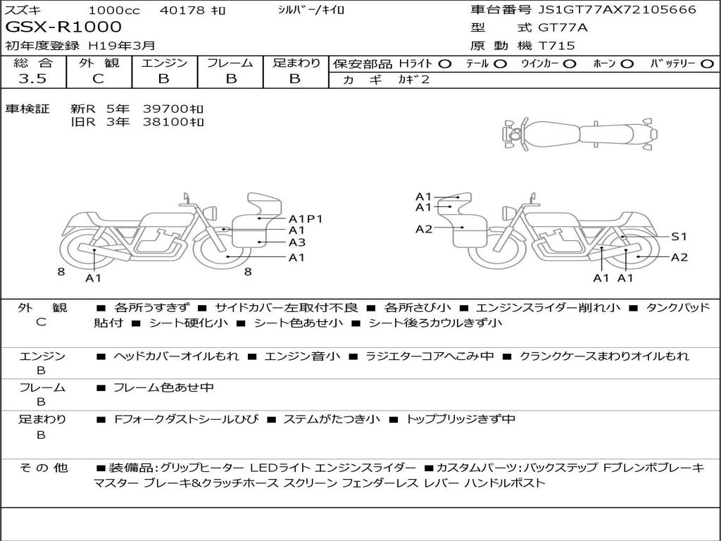 | Номер рамы / VIN | JS1GT77AX72105666 |