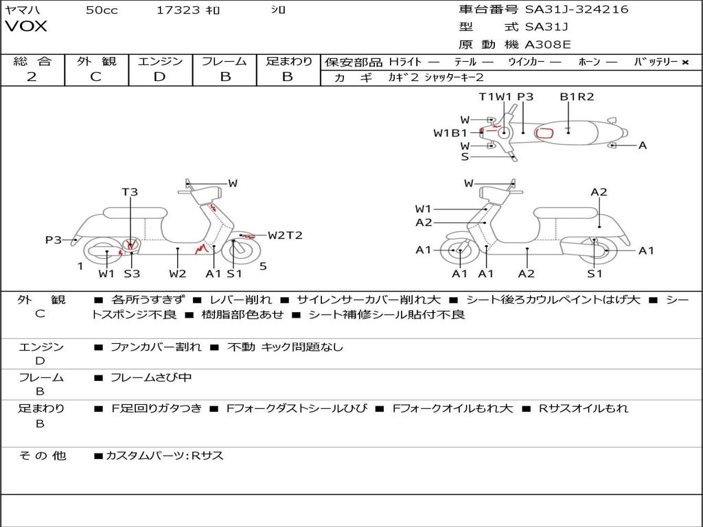 | Номер рамы / VIN | SA31J-324216 |