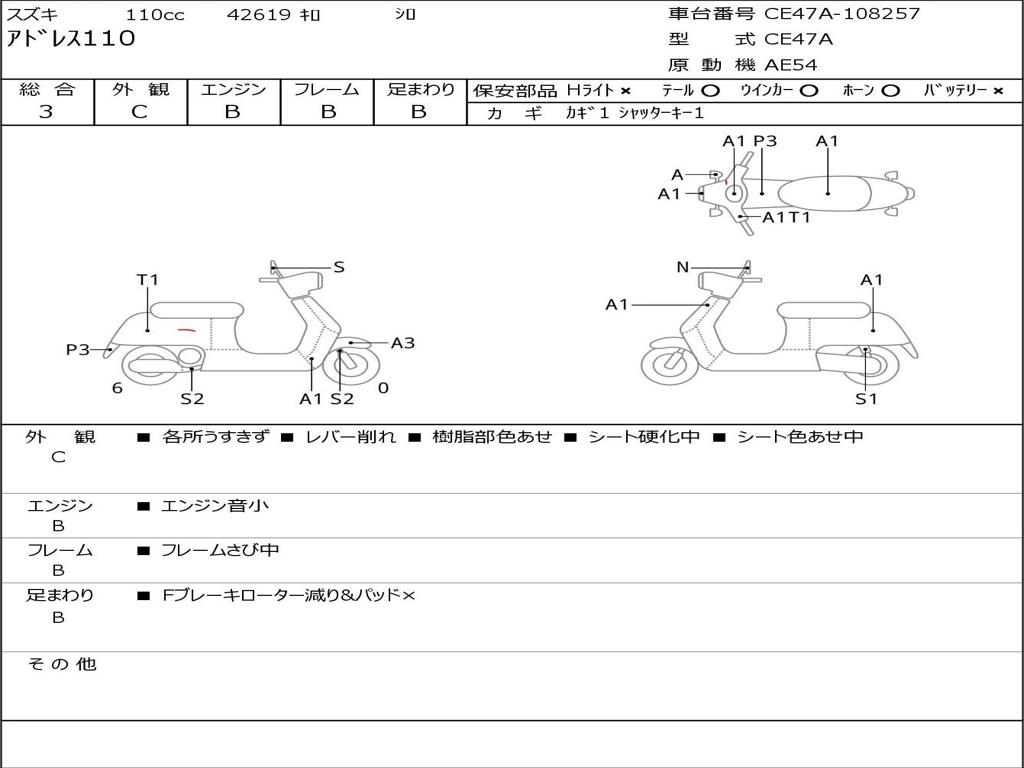 | Номер рамы / VIN | CE47A-108257 |