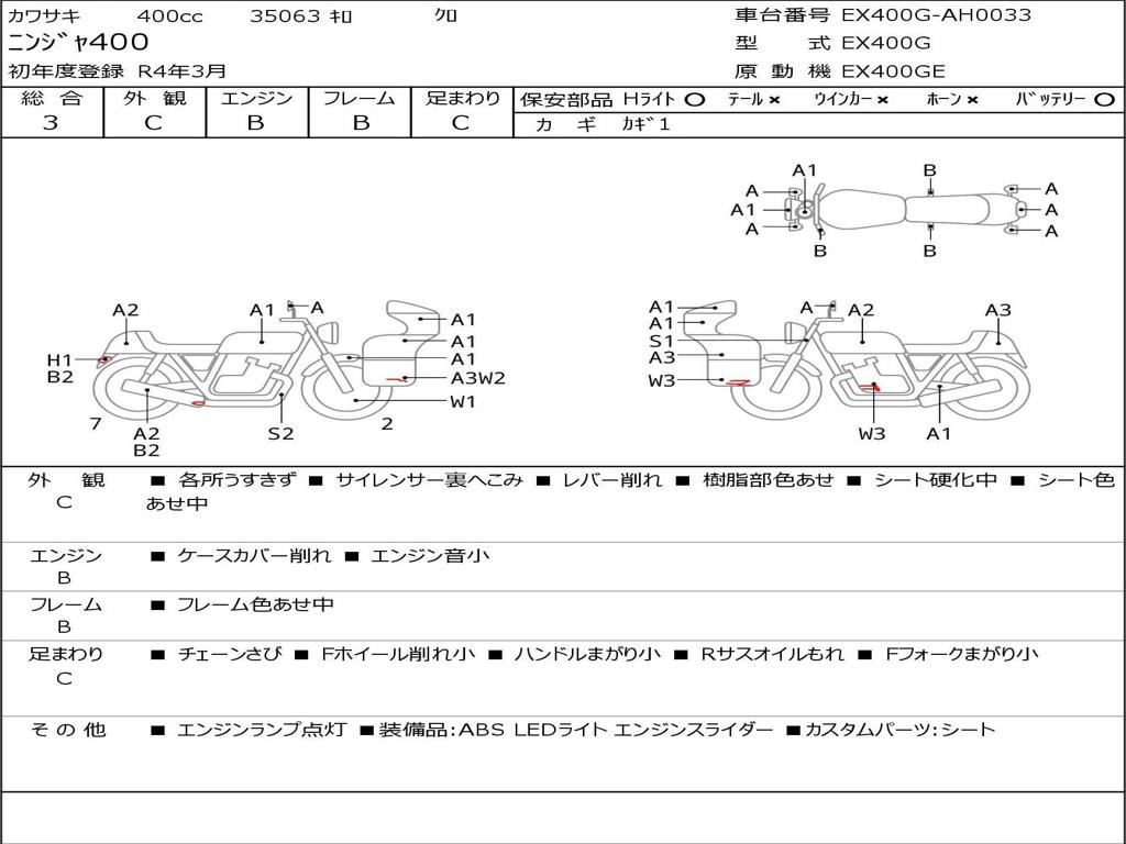 | Номер рамы / VIN | EX400G-AH0033 |