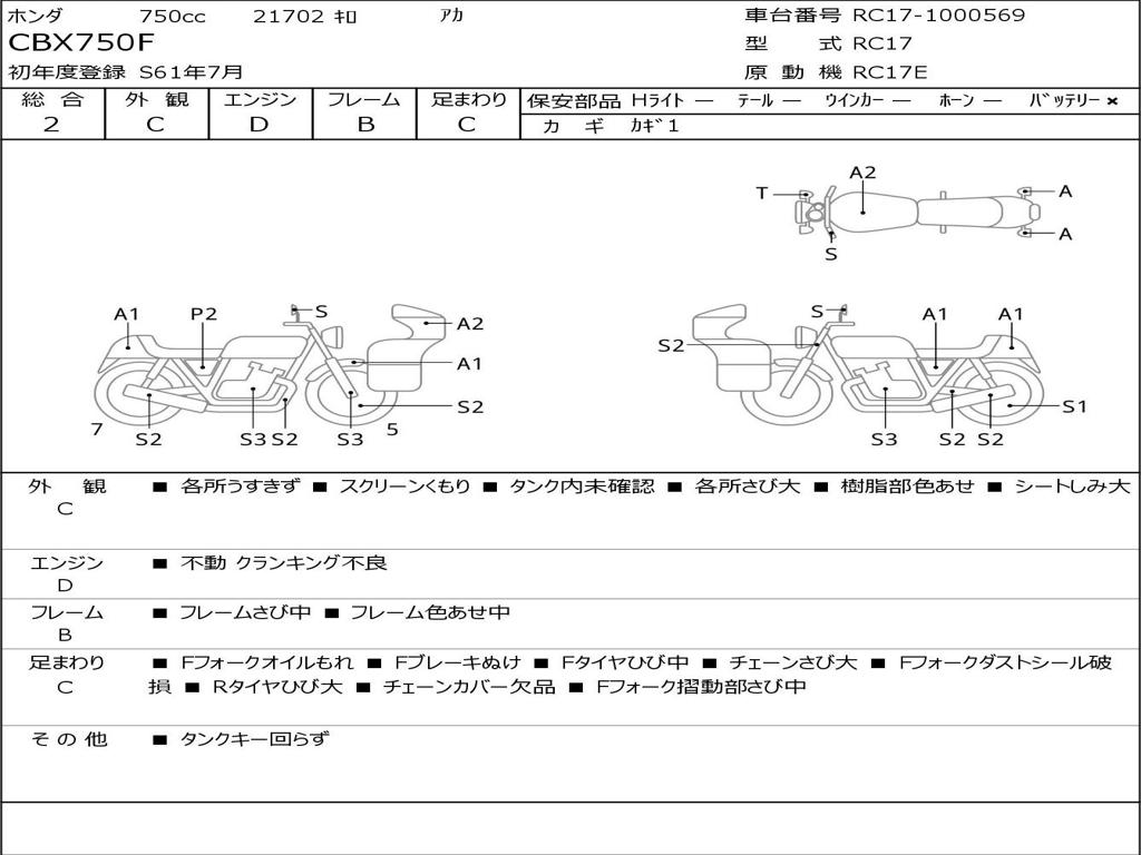 | Номер рамы / VIN | RC17-1000569 |