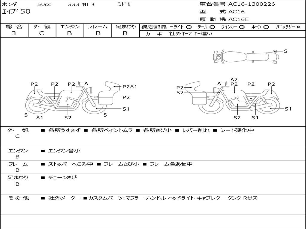 | Номер рамы / VIN | AC16-1300226 |