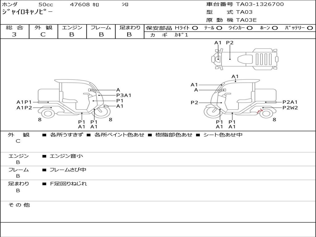 | Номер рамы / VIN | TA03-1326700 |