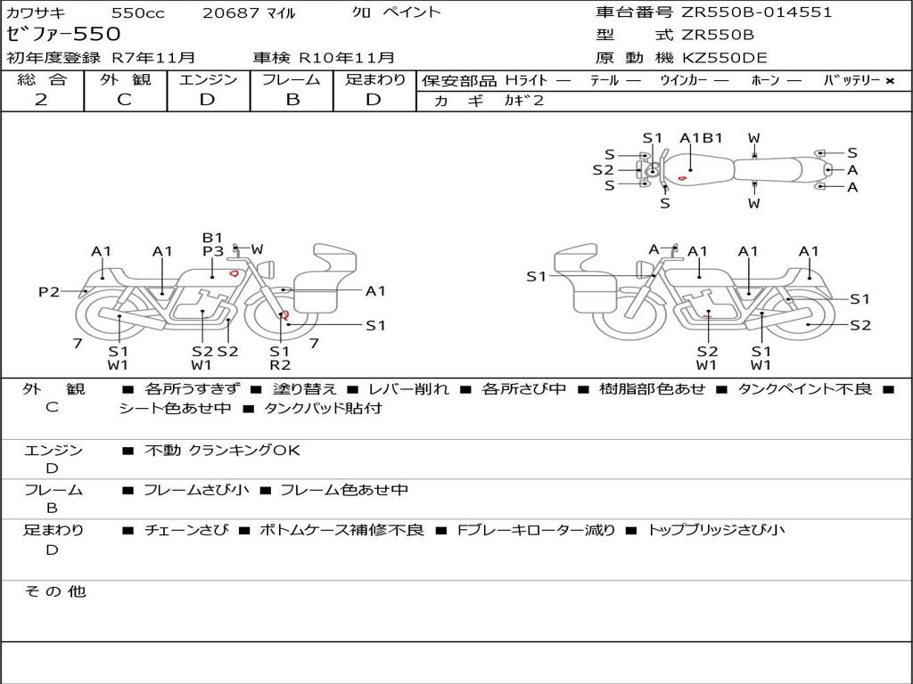 | Номер рамы / VIN | ZR550B-014551 |