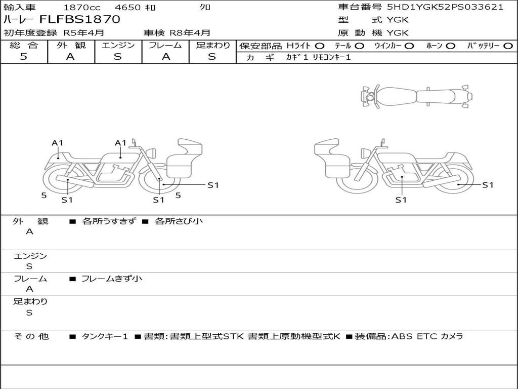 | Номер рамы / VIN | 5HD1YGK52PS033621 |